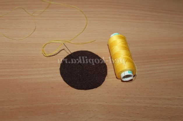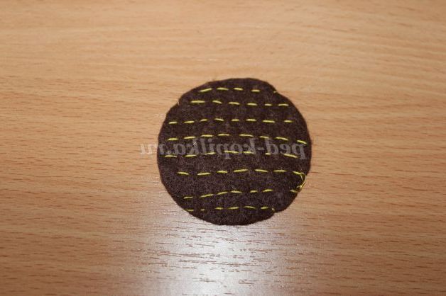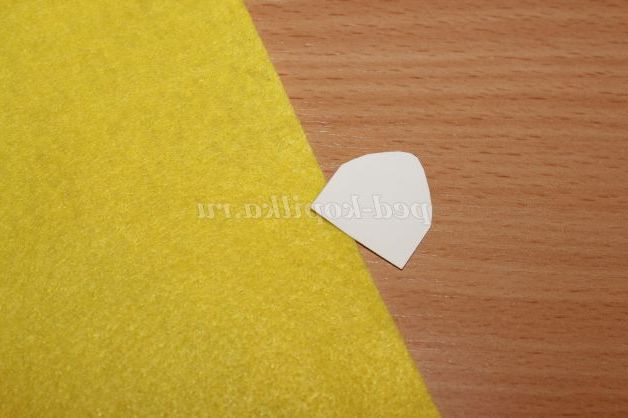 2)З допомогою шаблону робимо 2 деталі. Одну деталь з жовтого, іншу з темно-коричневого фетру.