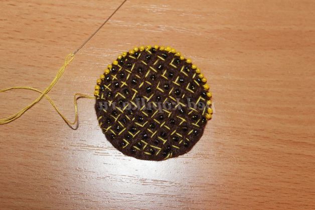 6)По краю обшиваємо жовтим бісером.