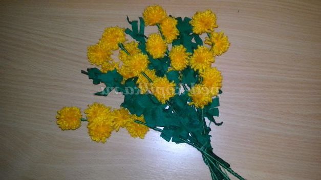 квіти з креповой папери, кульбаба своїми руками, літні квіти своїми руками