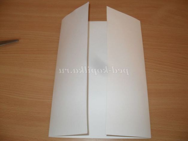 1)Кладемо перед собою папір горизонтально,беремо за краї і складаємо їх до центру.Складываем так,щоб у нас вийшли рівні "бока"