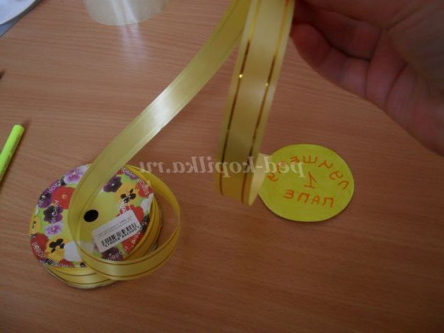 18)Приступимо до виготовлення медалі. що ви нагороджуєте" можете вибрати сами.Из шматочка пакувальної стрічки робимо "хвостик"