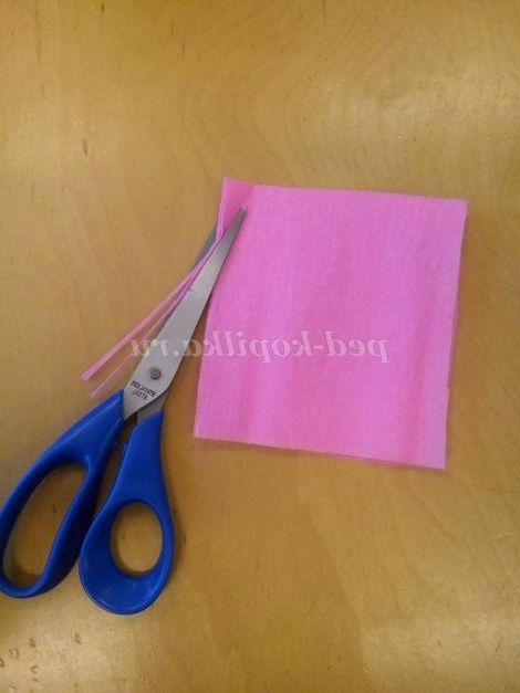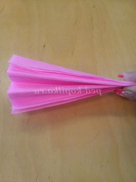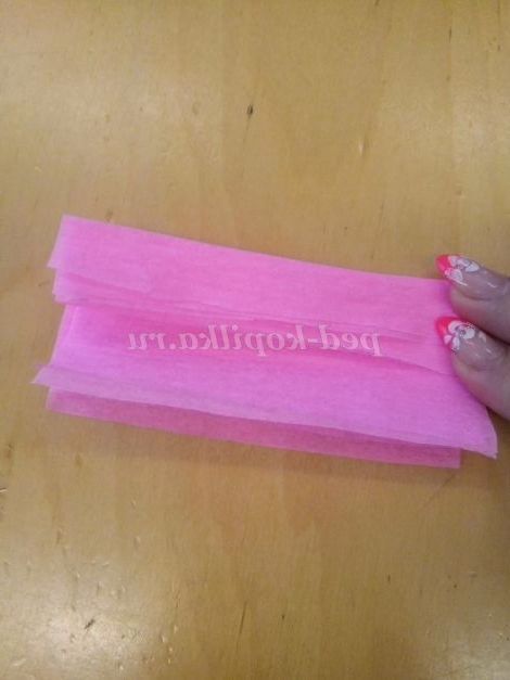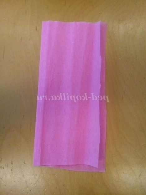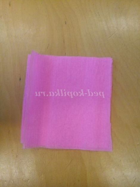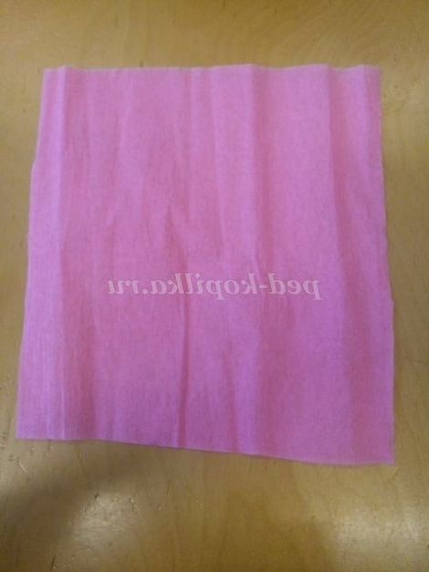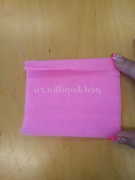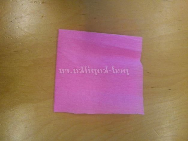 1) З креповой паперу вирізаємо квадрат,розміром приблизно 15 х 15 сантиметрів. Складаємо квадрат таким чином, щоб у нас вийшла "серветка".