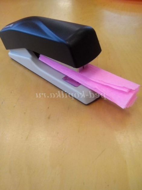 4) Беремо степлер і фіксуємо скріпкою по середині нашої гармошки.