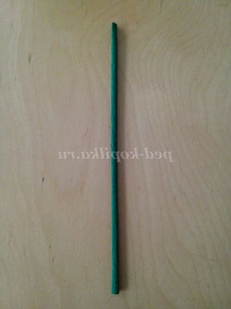 8) Починаємо виготовлення стебелька.Берем зелену папір,дерев'яну паличку і клей.