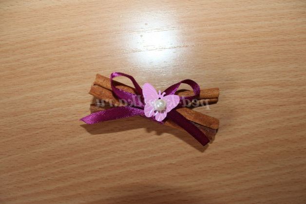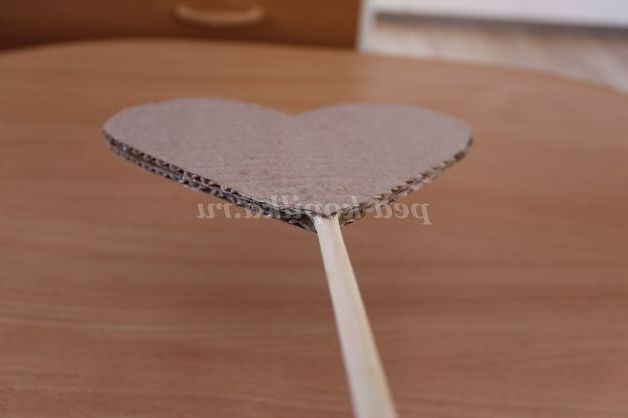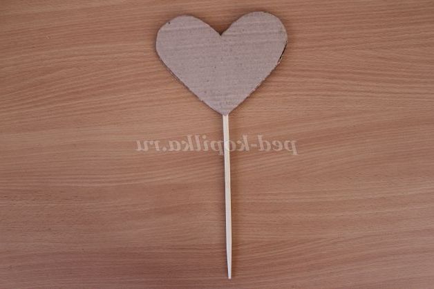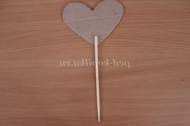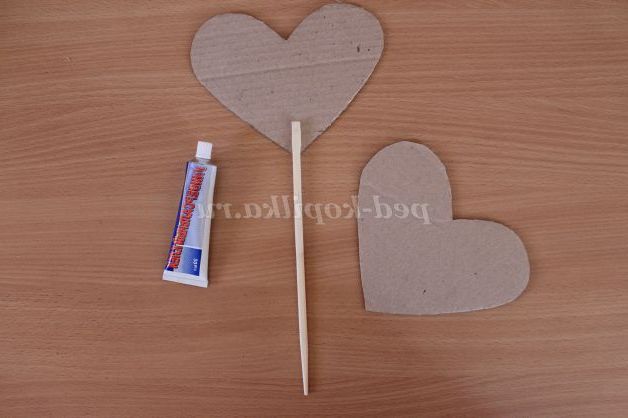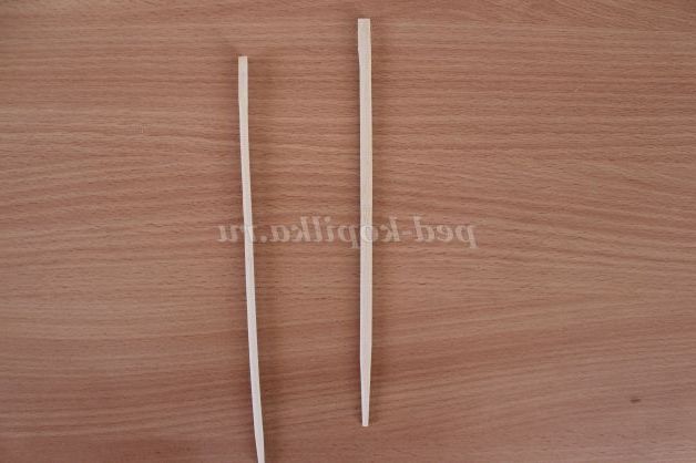3)Беремо палички для суші. Поділяємо. Одну палички розміщуємо між двома сердечками і склеюємо.