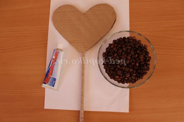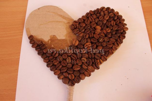 6)Промазуємо сердечко клеєм і викладаємо зерна по всій формі.