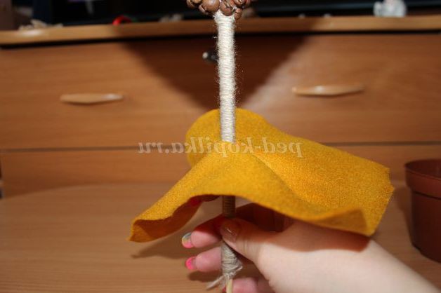15)Починаємо збирати наше дерево. Протягуємо крону в фетр.