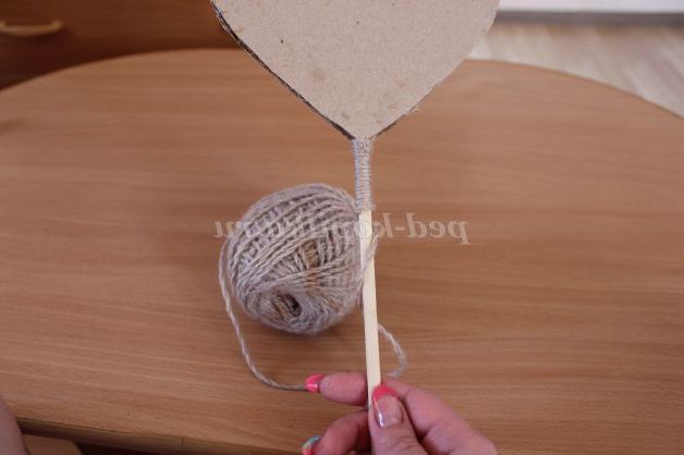 4)Беремо нитки. Фіксуємо у підстави кінчик і обмотуємо паличку до кінця.