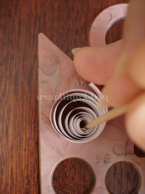 Візьміть зубочистку і, змістивши центр спіралі до краю кола шаблону, акуратно витягуйте.