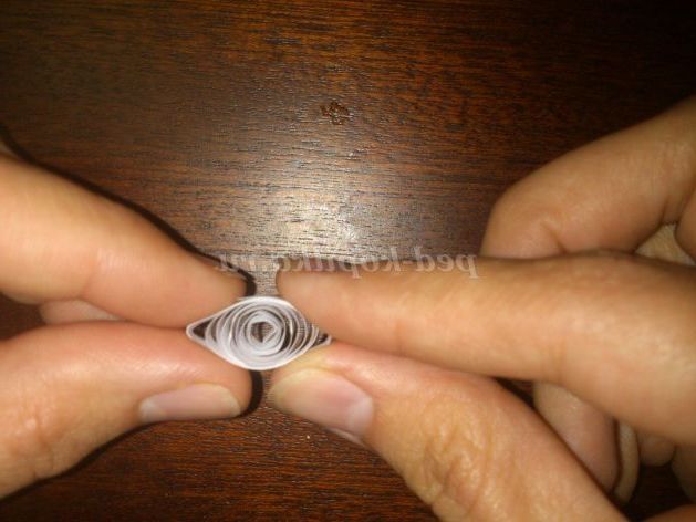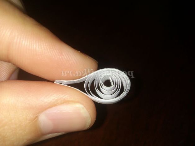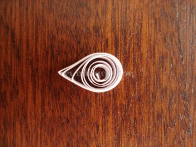 Стисніть великим і вказівним пальцями один її кінець, щоб спіраль придбала форму краплі. Підклейте кінчик краплею клею.