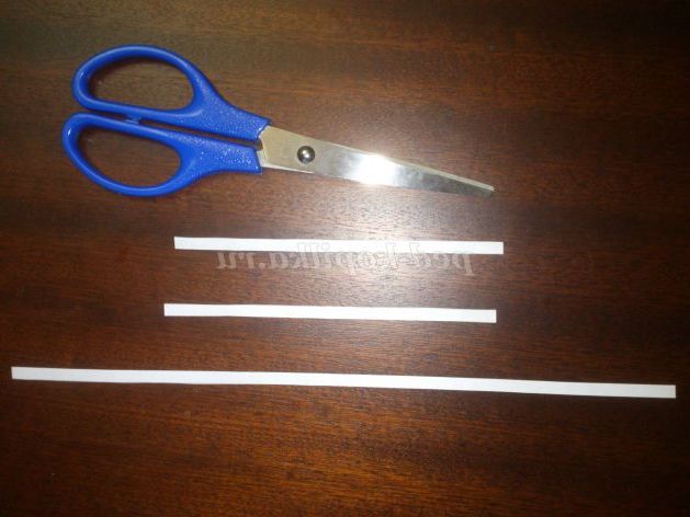 Для виготовлення даного елемента, вам знадобиться половина смужки, тому візьміть смужку, складіть навпіл і на місці згину розріжте ножицями.