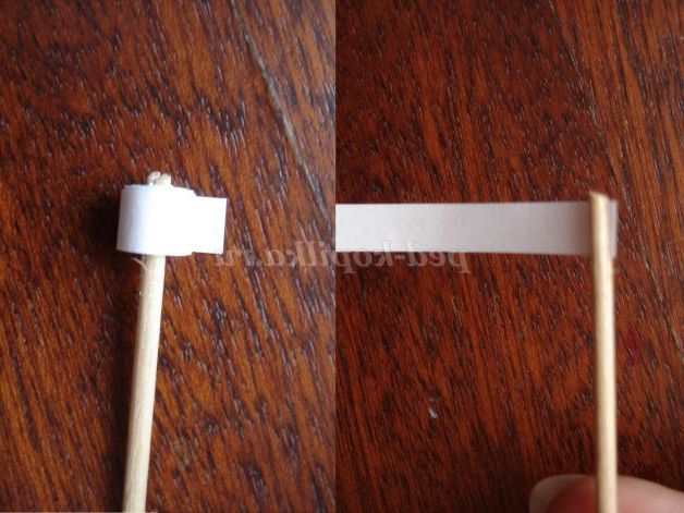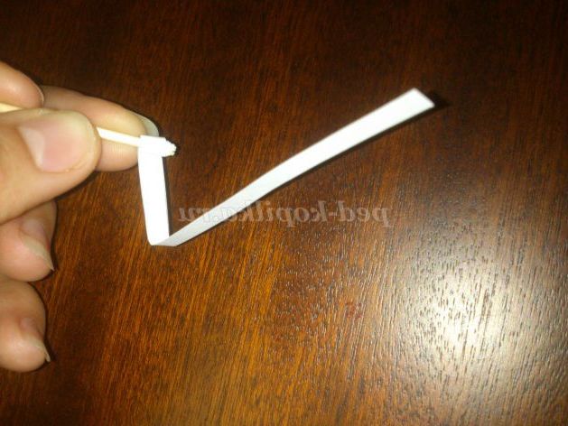 Візьміть смужку паперу, вставте кінчик в розколину зубочистки і рівно накручуйте, допомагаючи подушечками пальців.