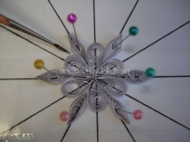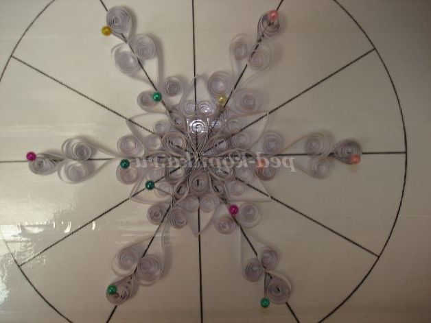 У завершенні прикрасьте сніжинку залишилися 6-ма елементами у формі краплі, приклеївши їх на кінцях завитка.