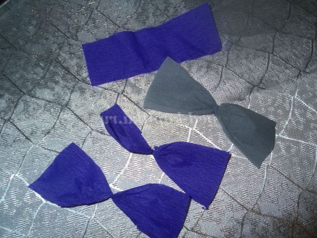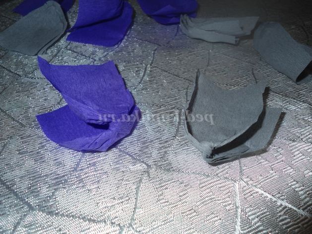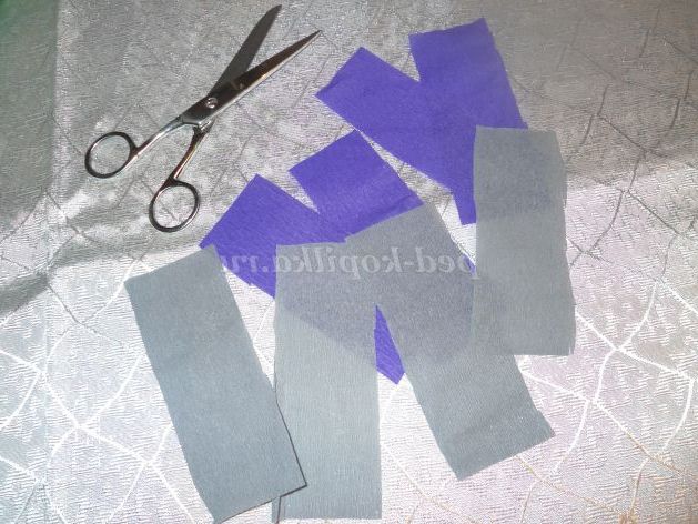 Для виготовлення бутона квітки крокусу необхідно взяти крепированную папір двох будь-яких кольорів, для того, щоб квітка виглядав більш цікавим і живим. В даному випадку, це чорний і сірий папір. Нарізаємо по чотири прямокутника кожного кольору розміром 5*13 див.