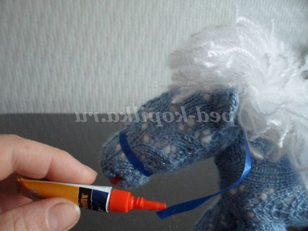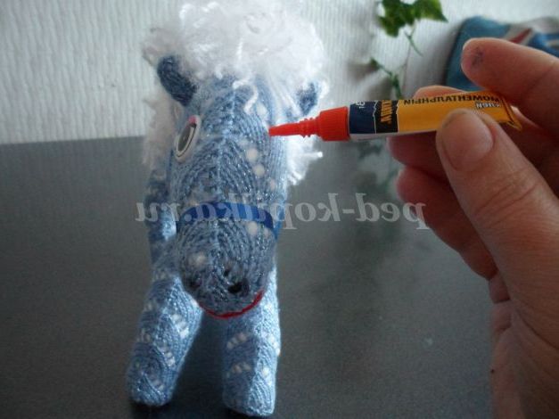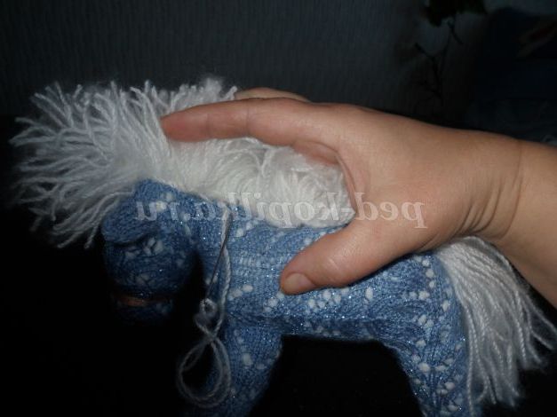 Пришиваємо її голкою до спинки і голові конячки. Формуємо чубчик і гриву