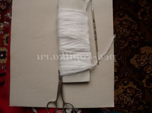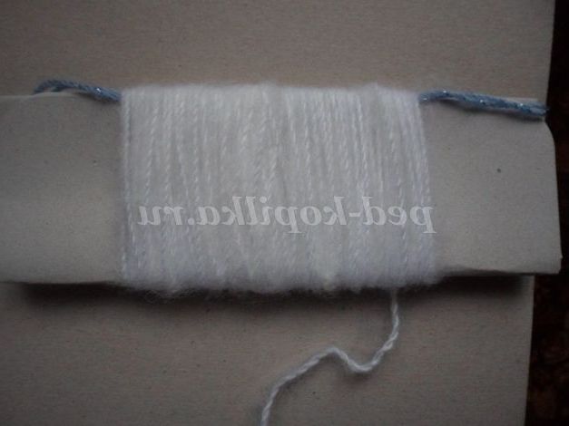 Візьмемо білу пряжу і смужку картону. Намотати кілька кіл нитки на картон