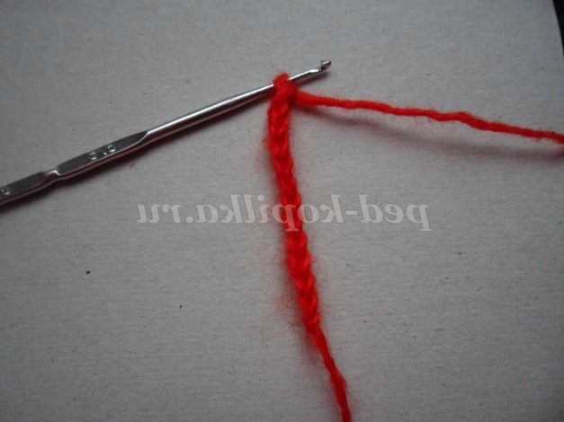 Тепер зробимо рот - гачком і червоною ниткою в'яжемо смужку потрібної довжини