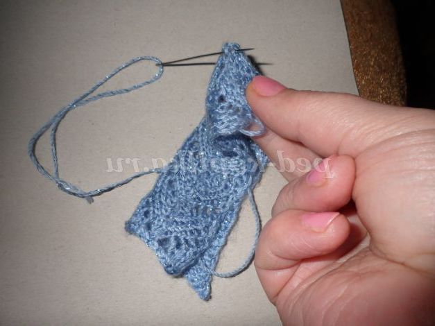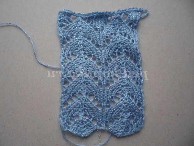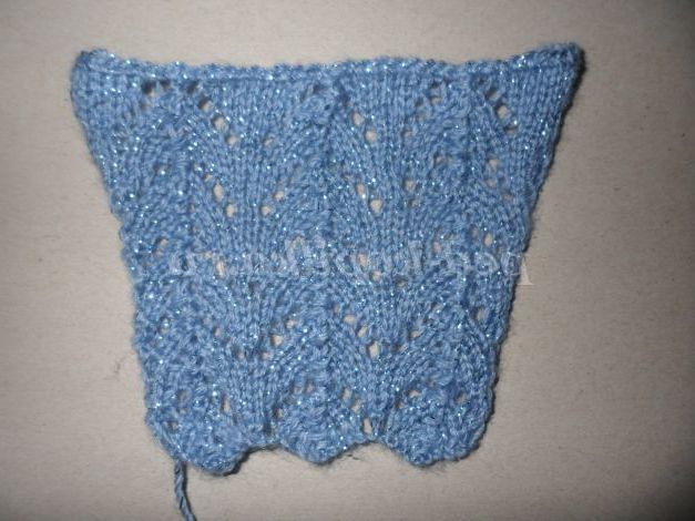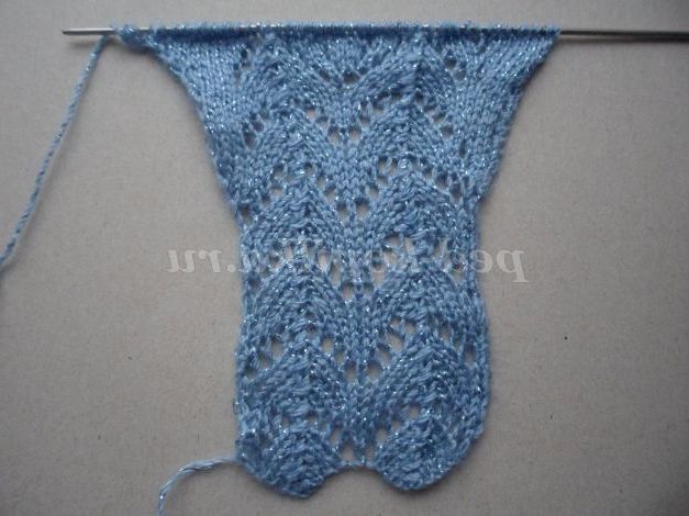 Набрати 22 петлі в'язати 6 візерунків у довжину, роблячи додаток петель в 5 візерунку по 1 петлі на початку і наприкінці 3 і 5 ряду. Вийде 26 петель