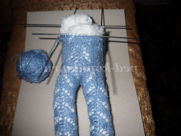 Тепер потрібно з'єднати 2 кінцівки, розподіливши 52 петлі на 4 спиці (черевце, 2 боки і зад )