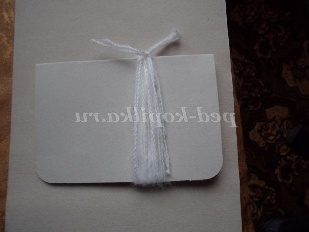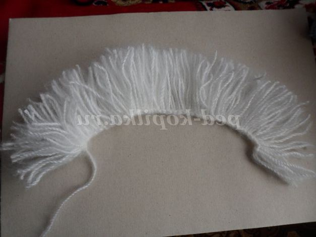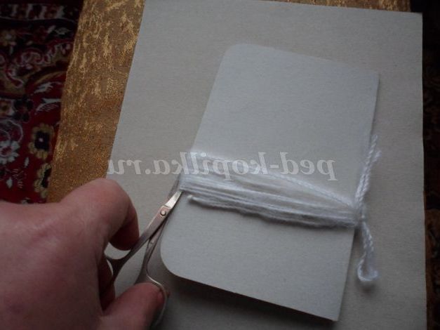 Також візьмемо білу пряжу і смужку картону. Намотати кілька кіл нитки на картон ( в 2 рази більше, ніж на хвіст)