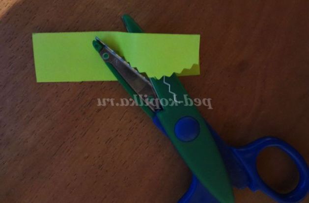 За допомогою фігурних ножиць вирізаємо листочки для квіточок.