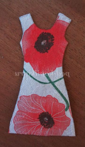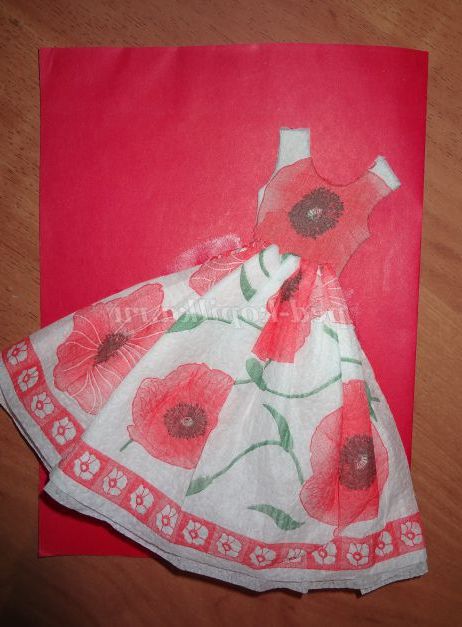 Промазати шаблон сукні клеєм і наклеїти зверху кольорову серветку