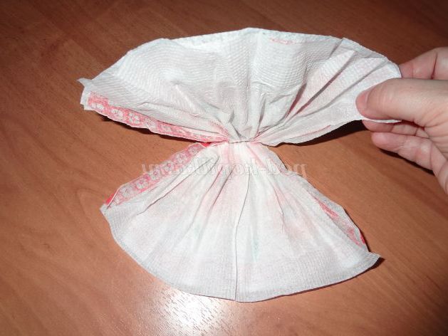 приминаем серветки посередині, складаємо серветки навпіл.