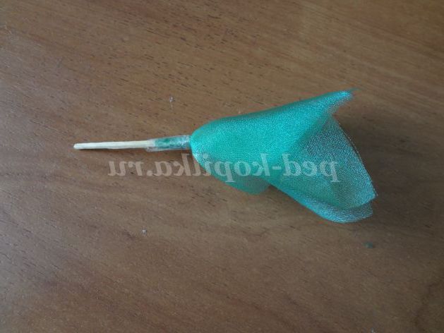 Приклеюємо їх за допомогою скотча до сірнику або зубочистці.