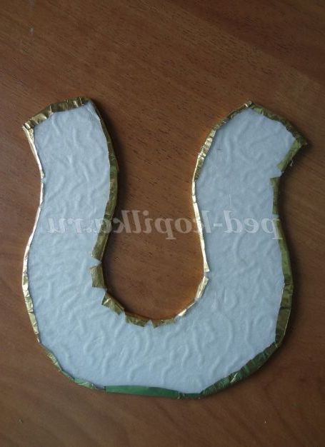 Обводимо підкову на фользі, залишаючи на одній деталі припуски для приклеювання.