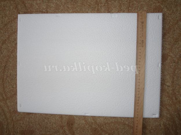 Вирізаємо з стельової плитки прямокутник зі сторонами 35 на 49 см.Соединяем їх між собою за допомогою клею для стельових плиток або степлера.