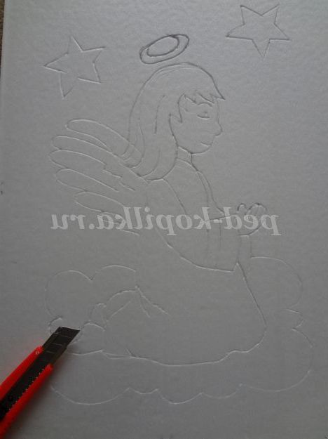 По контуру малюнка робимо надріз за допомогою канцелярського ножа.
