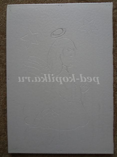 Перламутровим гелем малюємо складки на одязі і пір'ячко на крильцях. Ангел готовий!