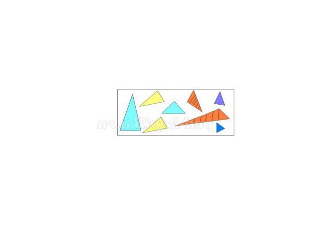 - Що спільного у цих фігур? Чим вони відрізняються? Знайдіть дві однакові фігури. Які ознаки трикутників ви знаєте?