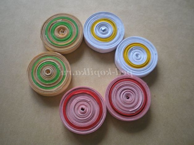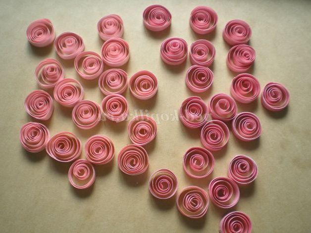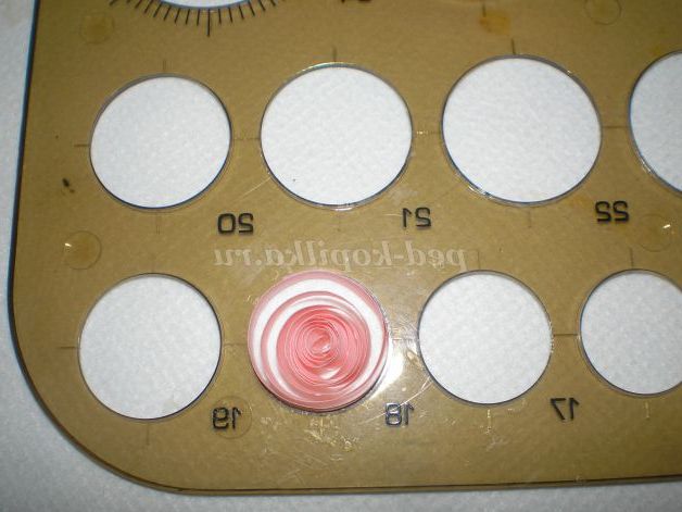 Тепер починаємо робити роли для прикраси коробочки. Накручуємо рол на зубочистку потрібного розміру, я робила 18 мм, розпускаємо, кінець приклеюємо, виходить ось така заготовка.