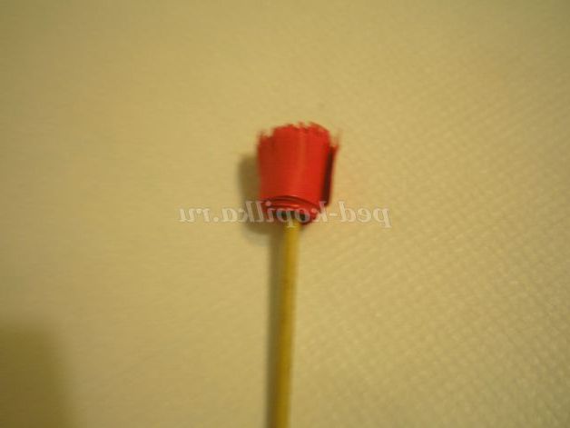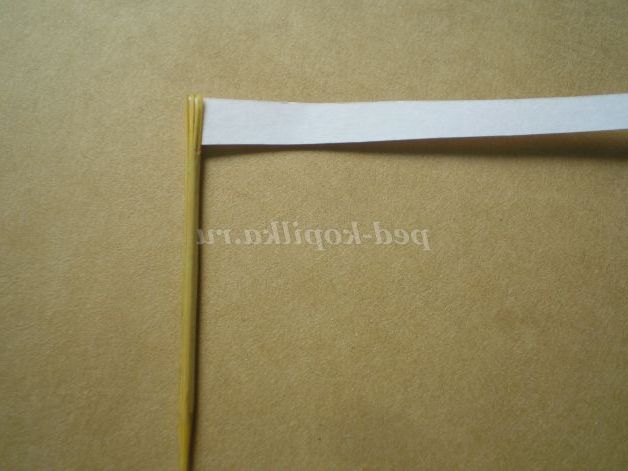 Накручуємо на зубочистку, починаючи з вузької смужки, змащуючи край клеєм.