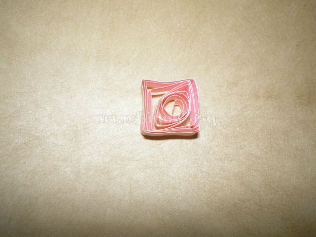 Для прикраси ручки робимо «листок», а потім аналогічно стискаємо коло з чотирьох сторін, а потім вирівнюємо кути, вийшов у нас ось такий «квадрат»
