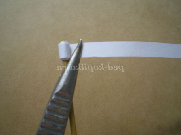 Беремо смужку паперу, вставляю в розколину зубочистки і починаю скручувати в рулон. Намагаючись скручувати щільніше.