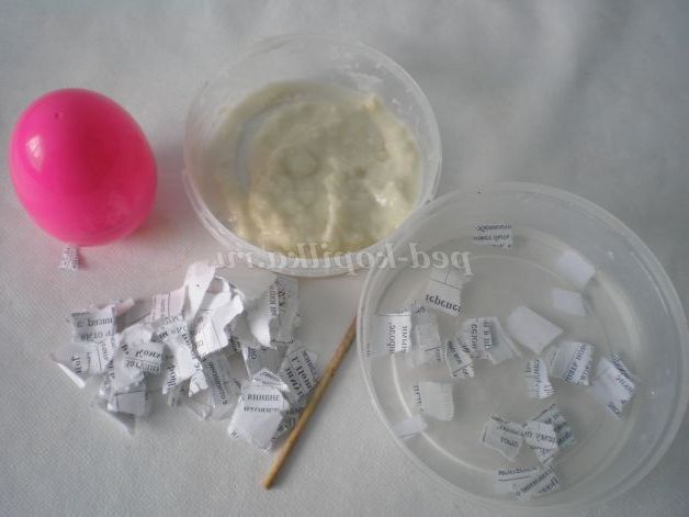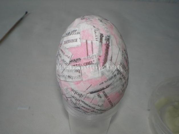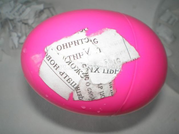 Намочимо газетні уривки у воді, і починаємо обкладати мокрим папером яйце, так щоб не було просвітів.