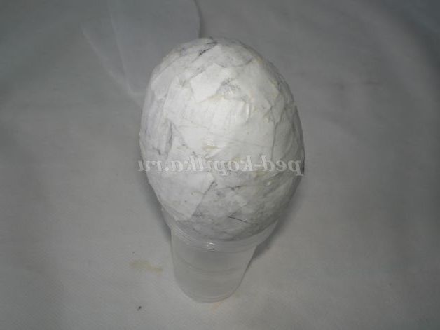 Потім обмазуємо яйце клейстером і починаємо обклеювати другий шар сухими паперовими уривками, поки не обклеїмо все яйце.