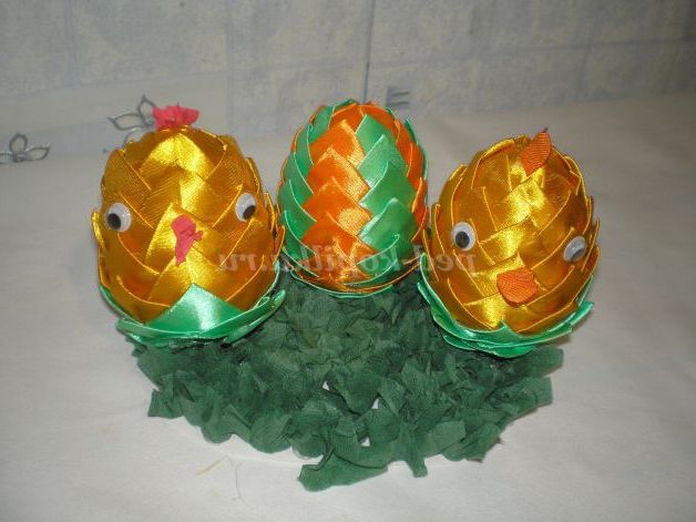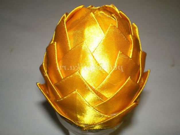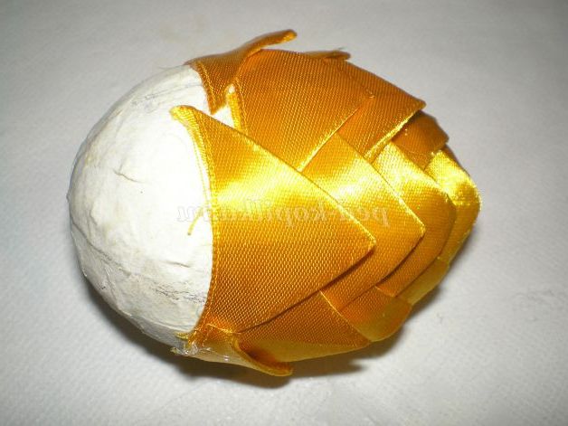 У нижній частині яйця залишився маленький круг , вирізала з стрічки, і приклеїла, прикриваючи кінці останнього ряду, якщо щось залишиться видно, акуратно підрізаємо ножицями.
