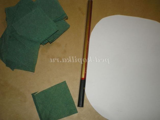 На олівець накручу квадрат зеленого кольору, мажемо клеєм.