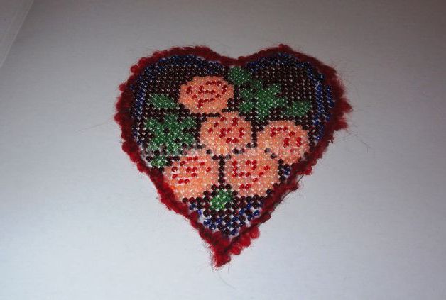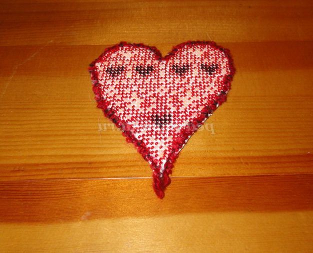 5. Вирізаємо по контуру вишите сердечко плюс приблизно 2-3 мм канви.