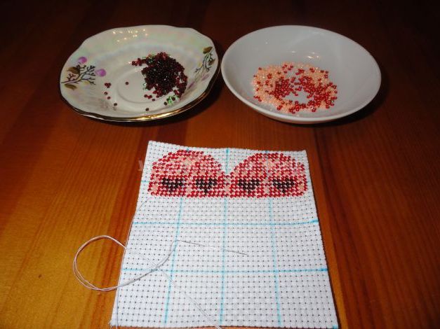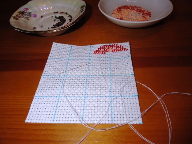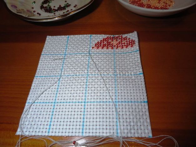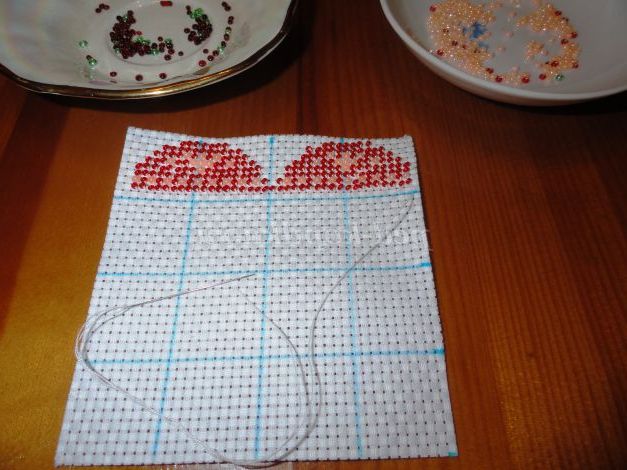 Запам'ятати: бісер пришивається в техніці «напівхрест» з постійним додержанням напрямки діагоналі. Виконують вишивку без узєлковим способом, тоді вузли не будуть заважати, випирати, і робота буде виглядати акуратним.