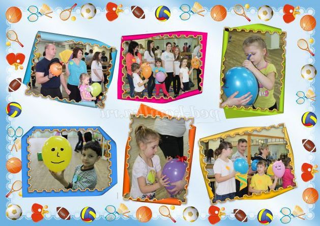 Ведучий: Запрошуємо сімейні команди і вболівальників, хлопців, який будуть тримати в руках повітряна кулька. Тато з маркером у руці біжить до кульки і малює очі, вії, губи, ніс (особа) та одягає бейсболку. Мама приймає естафету, підбігає до другого кульці малює обличчя і пов'язує косинку. Дитина підбігає до третього кульці малює обличчя і одягає бант. Потім вся родина повинна взяти в руки свої «портрети». Подивимося, чия сімейка найвеселіша.