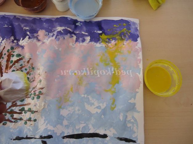 Майстер-клас з малювання з використанням нетрадиційної техніки, малювання паперовими грудочками: "Весняної пейзаж"