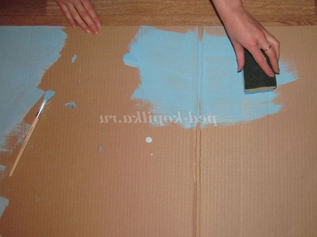 3. Потім губкою, змоченої у фарбі, проводимо по картону, тонуючи всю поверхню. Після того, як макет підсохне, можна повторити процедуру.