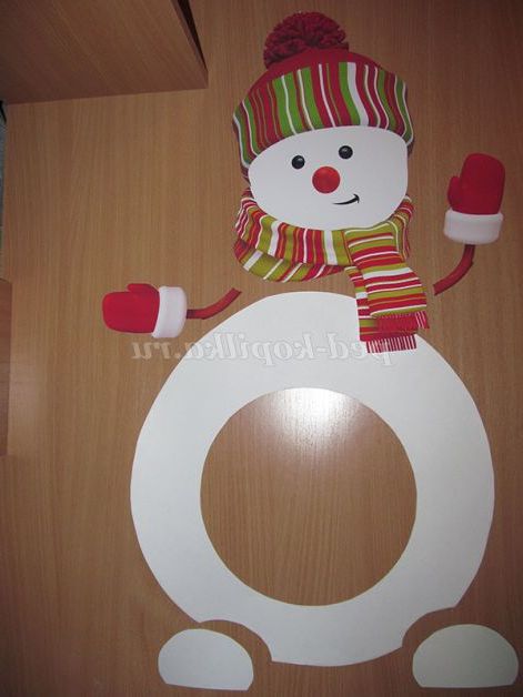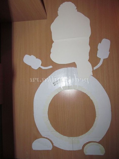 7. Всі вирізаємо. Обводимо всі частини сніговика на картоні, вирізаємо, і склеюємо. Тобто повинен вийти сніговик з звичайного паперу і сніговик з картону, які потім склеюються.
