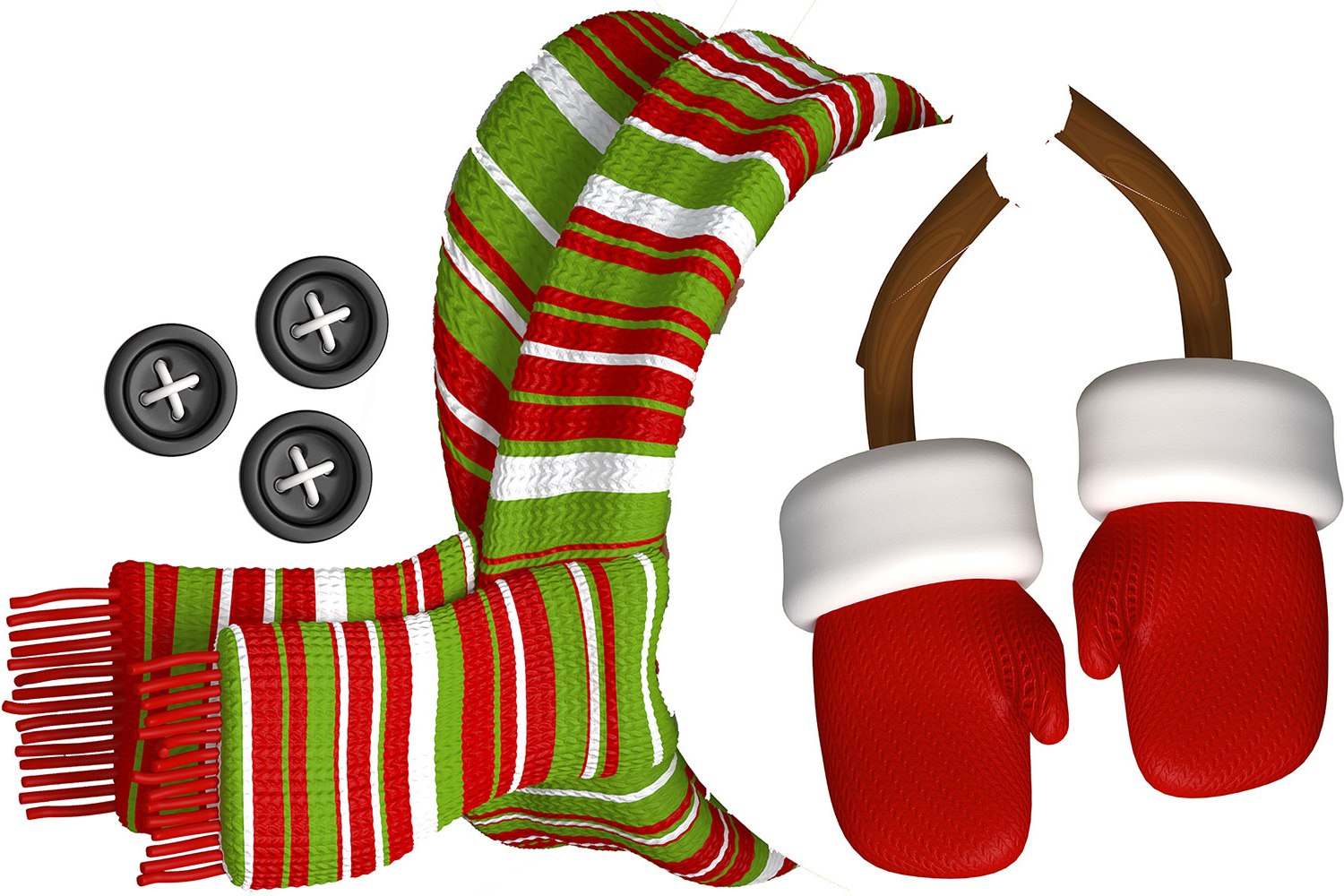 5. Роздруковуємо шаблони сніговика, ялиночок і крижинок. Всі вирізаємо. Приклеюємо шарф сніговика до голови.