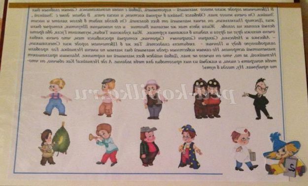 Опис: Дорослий пропонує дитині знайти Незнайка за описом, який сховався серед своїх двійників.