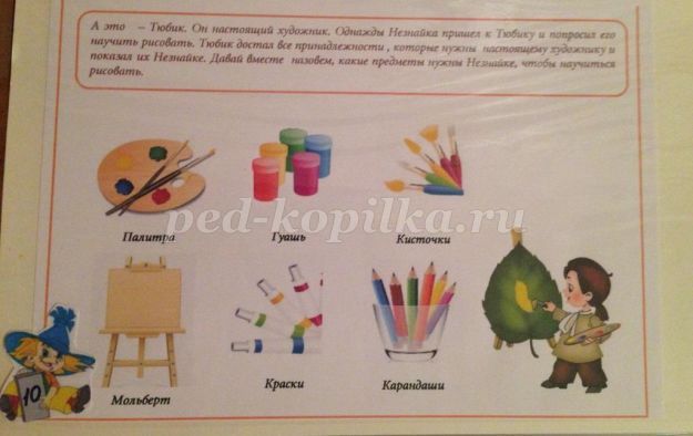 Опис: Дитині пропонується назвати предмети необхідні справжньому художнику.